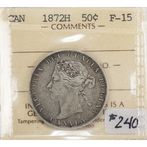 SOLD Canada 1872-H 50 Cents Half Dollar Silver Coin - ICCS F-15