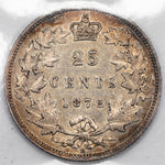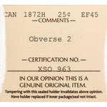 Canada 1872-H Obv 2 25 Cents Quarter Silver Coin - ICCS EF-45