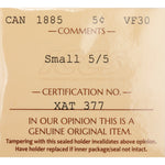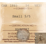 Canada 1885 Small 5/5 5 Cents Silver Coin - ICCS VF-30