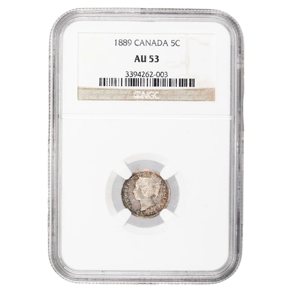 Available for sale is a Canada 1889 5 Cents Silver Coin - NGC AU-53 SKU: 3394262-003
