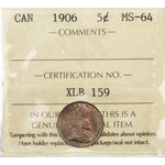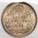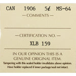 Canada 1906 5 Cents Silver Coin - ICCS MS-64