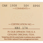 Canada 1908 50 Cents Half Dollar Silver Coin - ICCS SP-66 - Specimen Strike