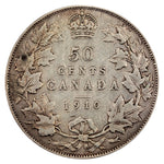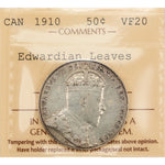 Canada 1910 Edwardian Leaves 50 Cents Half Dollar Silver Coin - ICCS VF-30