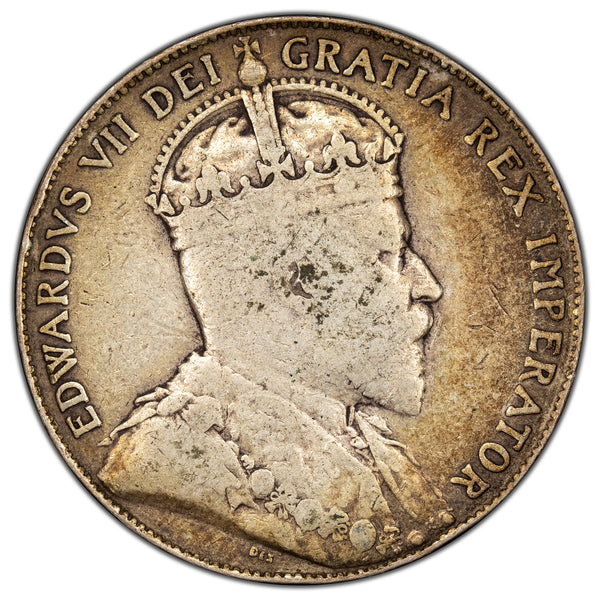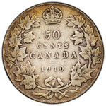 Canada 1910 Victorian Leaves 50 Cents Half Dollar Silver Coin - Fine