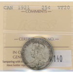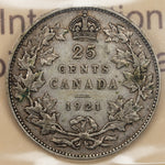 SOLD Canada 1921 25 Cents Quarter Silver Coin - ICCS VF-20