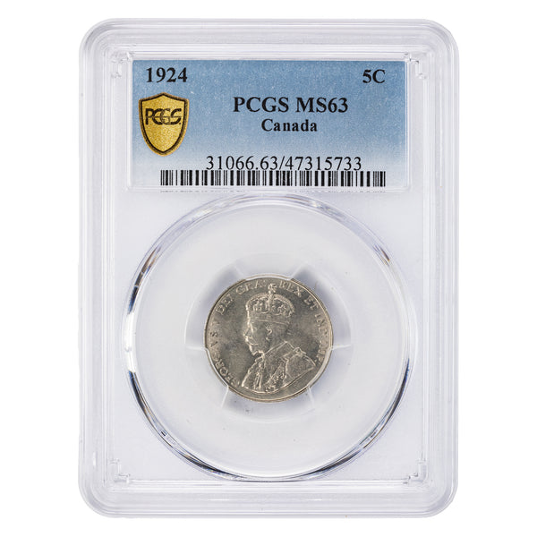 Canada 1924 5 Cents Nickel Coin - PCGS MS-63