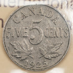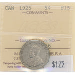 Canada 1925 5 Cents Nickel Coin - ICCS F-15