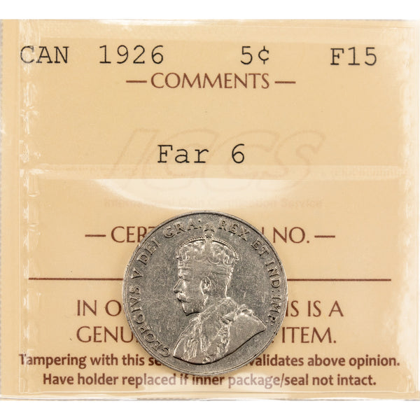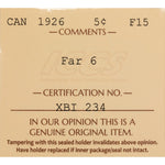 Canada 1926 Far 6 5 Cents Nickel Coin - ICCS F-15