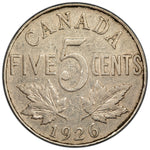 Canada 1926 Far 6 5 Cents Nickel Coin - Very Good