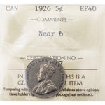 Canada 1926 Near 6 5 Cents Nickel Coin - ICCS EF-40