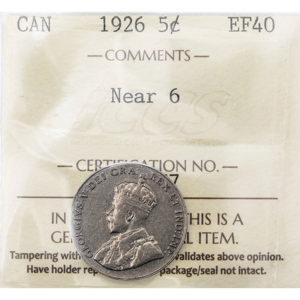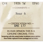 Available for sale is a Canada 1926 Near 6 5 Cents Nickel Coin - ICCS EF-40 SKU: XMS 177
