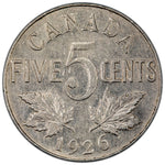 Canada 1926 Near 6 5c Five Cents Coin Key Date! - Very Fine