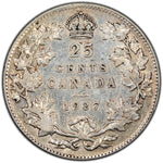 Canada 1927 25 Cents Quarter Silver Coin - Fine +