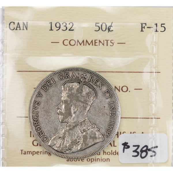 SOLD Canada 1932 50 Cents Half Dollar Silver Coin - ICCS F-15