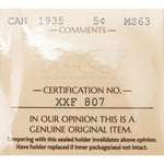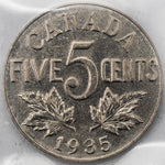Canada 1935 5 Cents Nickel Coin - ICCS MS-63