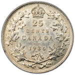 Canada 1936 25 Cents Quarter Silver Coin - EF-45