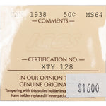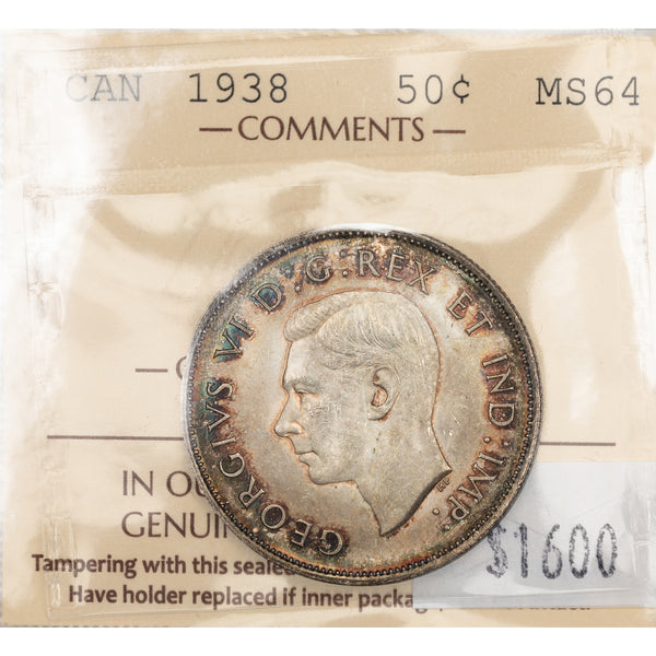 SOLD Canada 1938 50 Cents Half Dollar Silver Coin - ICCS MS-64