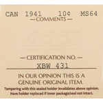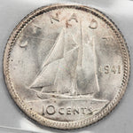 Canada 1941 10 Cents Dime Silver Coin - ICCS MS-64