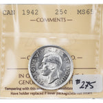 SOLD Canada 1942 25 Cents Quarter Silver Coin - ICCS MS-65