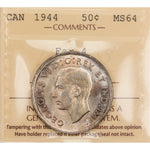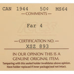 Canada 1944 Far 4 50 Cents Half Dollar Silver Coin - ICCS MS-64
