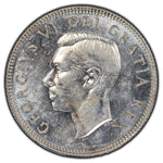 Available for sale is a Canada 1948 25 Cents Silver Coin - AU-50