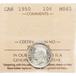 Canada 1950 10 Cents Dime Silver Coin - ICCS MS-65