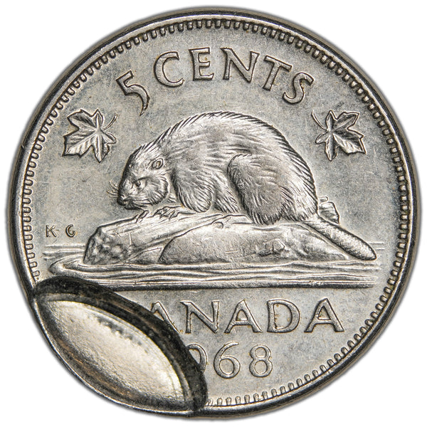 Available for sale is a Canada 1968 5 Cents Nickel Error Coin - Partial Brockage