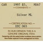 Canada 1997 $5 1oz .999 Fine Silver Maple Leaf Key Date! - ICCS MS-67