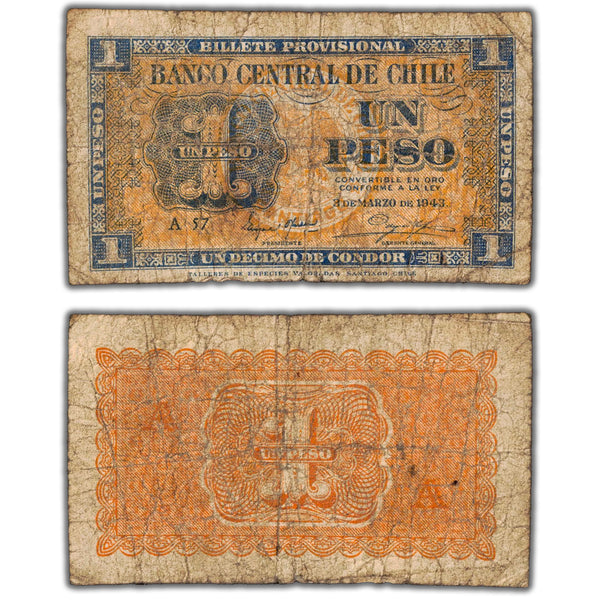 Available for sale is a Chile 1943 1 One Peso Note P #90a - Circulated