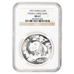 Available for sale is a China 1997 Large Date 10 Yuan 1oz .999 Fine Silver Panda Coin - NGC MS-67 SKU: 4079620-003
