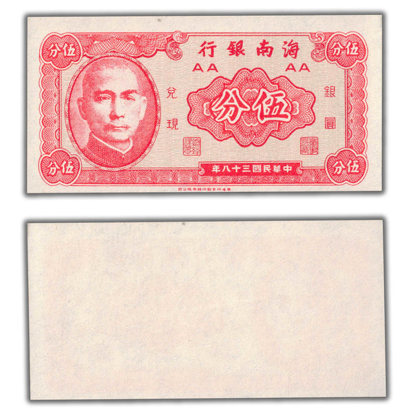 SOLD China Hainan Bank N.D (1949) 5 Fen Note P #S1453