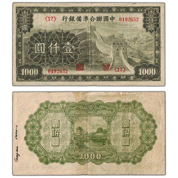 Available for sale is a China ND (1945) 1000 Yuan Note P #J91 - Minor Writing