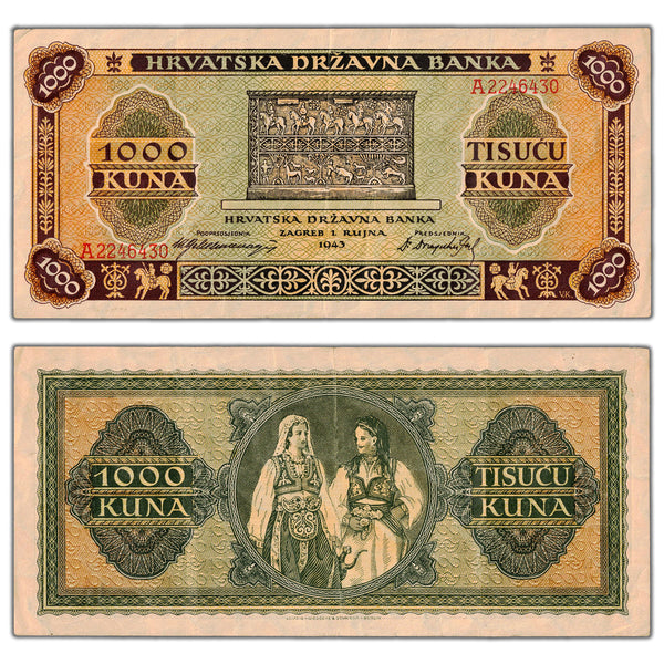 Available for sale is a Croatia 1943 1000 Kuna Note P #12 - Circulated