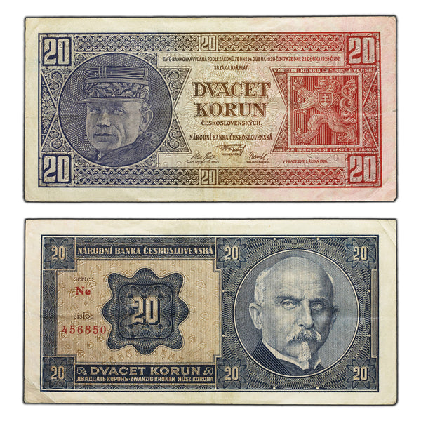 SOLD Czechoslovakia 1926 20 Korun Note P #21a