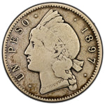 Available for sale is a Dominican Republic 1897-A Peso Silver Coin SKU: SP0213