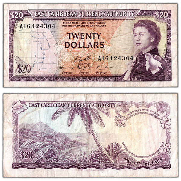 Available for sale is a East Caribbean States 1965 $20 Twenty Dollars Note P #15g - Circulated Country: East Caribbean States Year: 1965 Denomination: 20 Dollars Prefix/Series: A16 Catalogue: Pick...