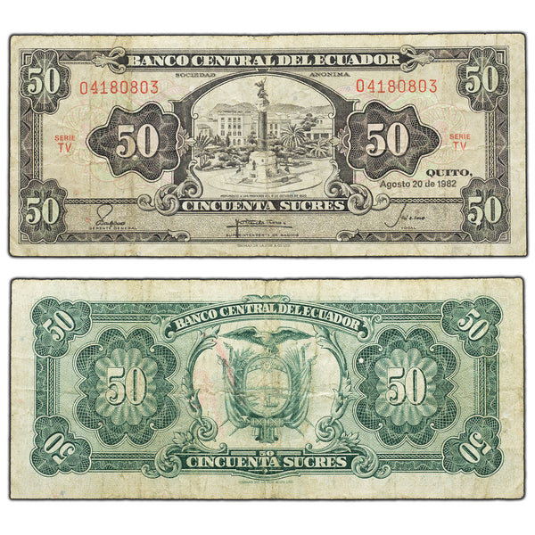 SOLD Ecuador 1982 50 Fifty sucres Note P #116e