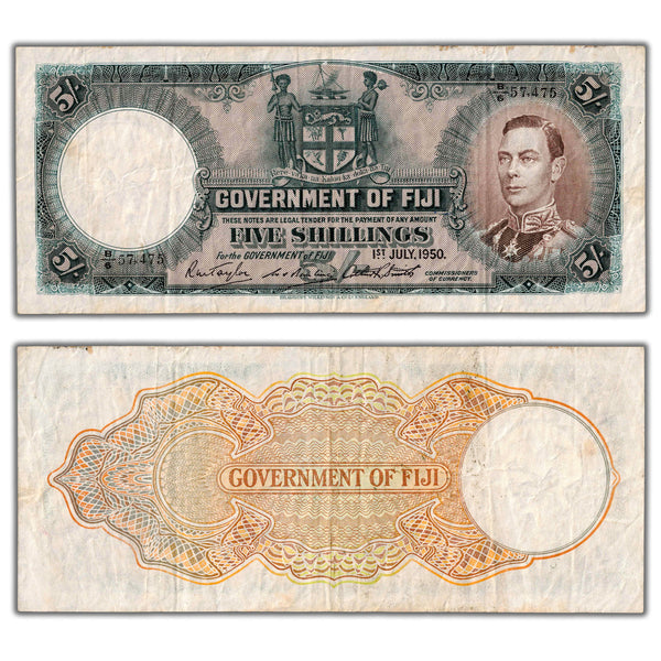 SOLD Fiji 1950 5 Five Shillings Note P #37j