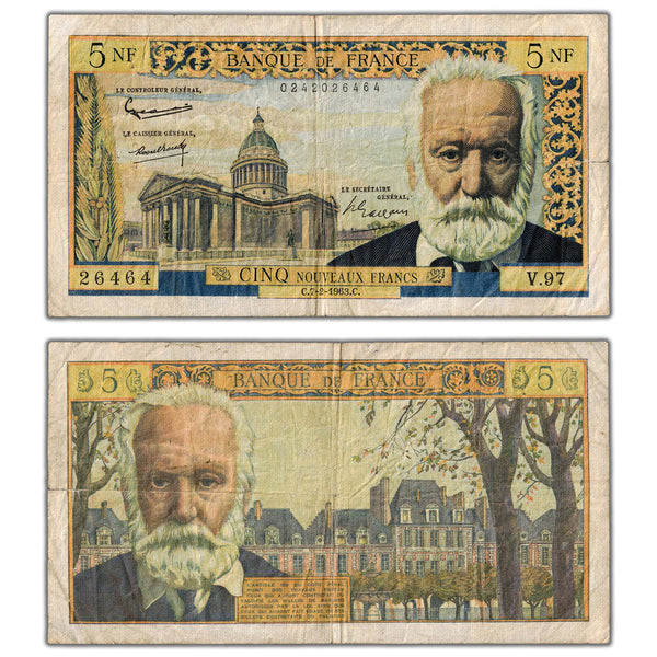 Available for sale is a France 1963 5 New Francs Note P #141a - Pinholes Country: France Year: 1963 Denomination: 5 New Francs Catalogue: Pick #141a Grade: Circulated Comments: Pinholes...