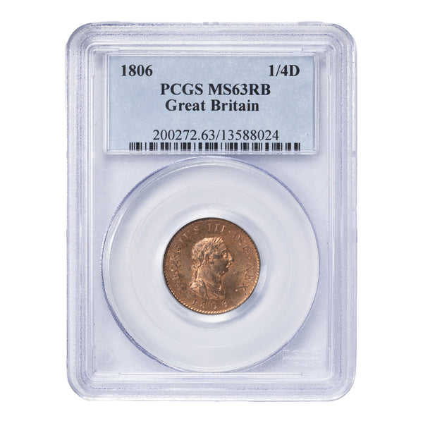 SOLD Great Britain 1806 Farthing 1/4 Penny Coin - PCGS MS-63 RB