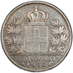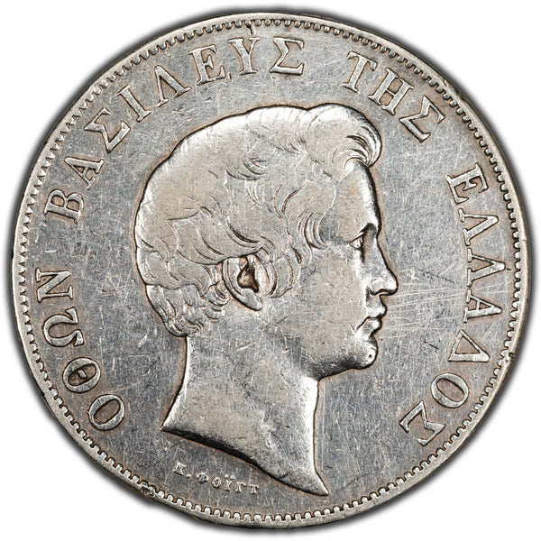 Available for sale is a Greece 1833 Paris Mint 5 Drachmai Silver Coin KM #20 - Cleaned