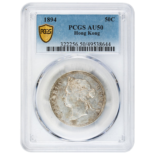 SOLD Hong Kong 1894 50 Cents Silver Coin KM #9.1 - PCGS AU-50