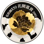 Hong Kong 2002 $50 Five Blessings Sterling Silver Coin - Flower