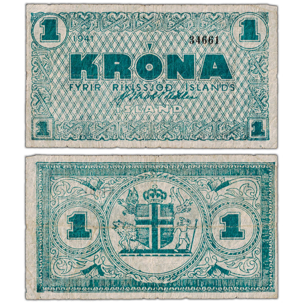 Available for sale is a Iceland 1941 1 Krona Note P #22g - Circulated