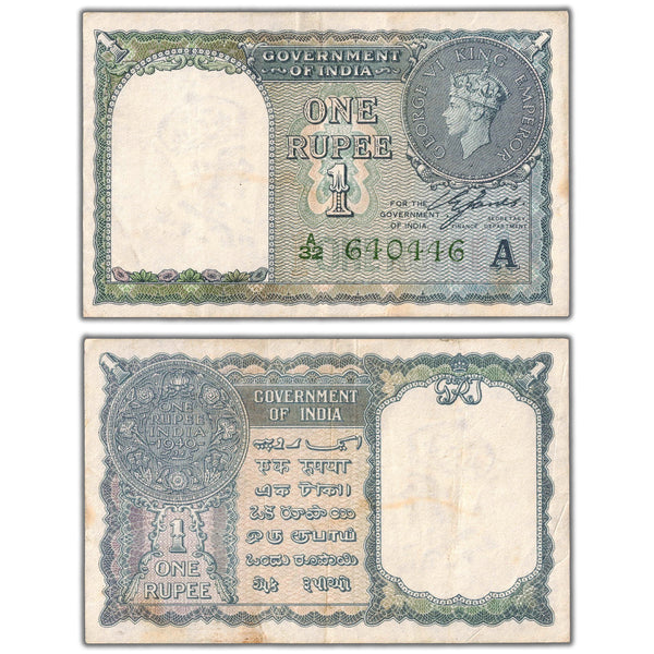 India 1940 1 One Rupee Note P #25d - Light Staining