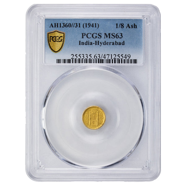 SOLD India Hyderabad AH1360 31 (1941) 1/8 Ashrafi Gold Coin PCGS MS-63 Y# 54.2