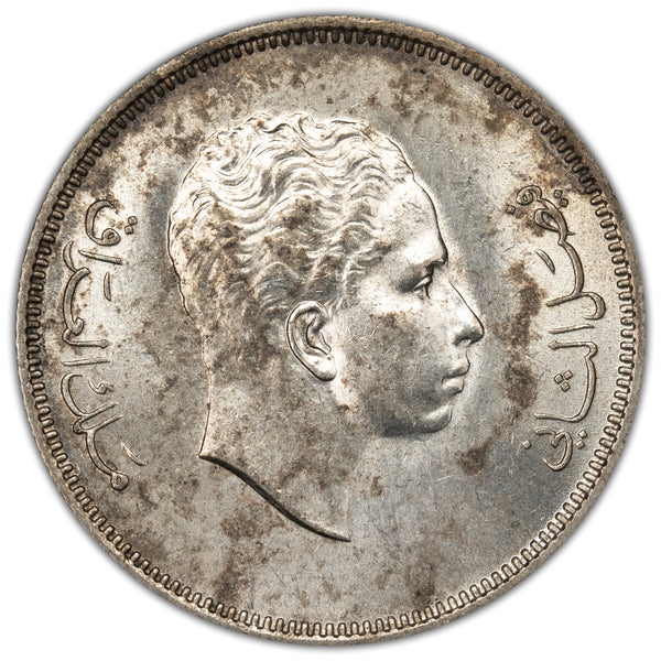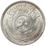 Available for sale is a Iraq 1955 50 Fils Silver Coin KM #117 SKU: SP1185