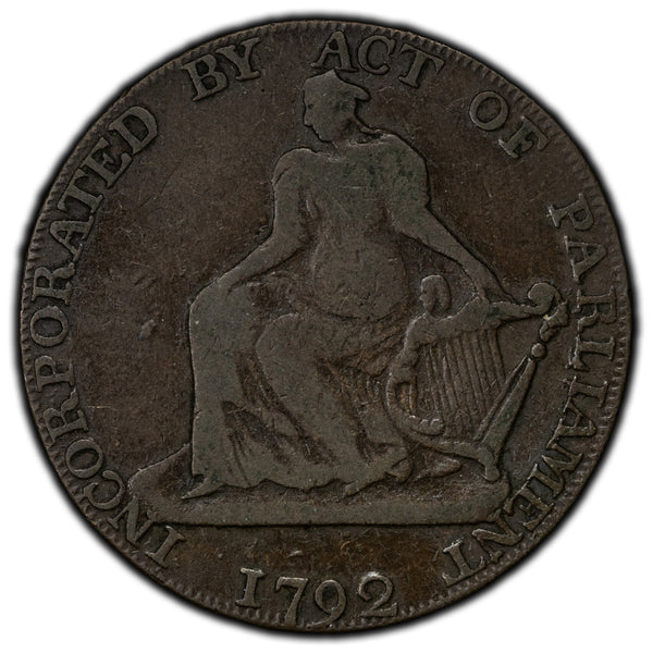 Ireland 1792 Dublin Camac Ryan 1/2 Half Penny Token D&H #147 Plain Edge