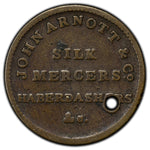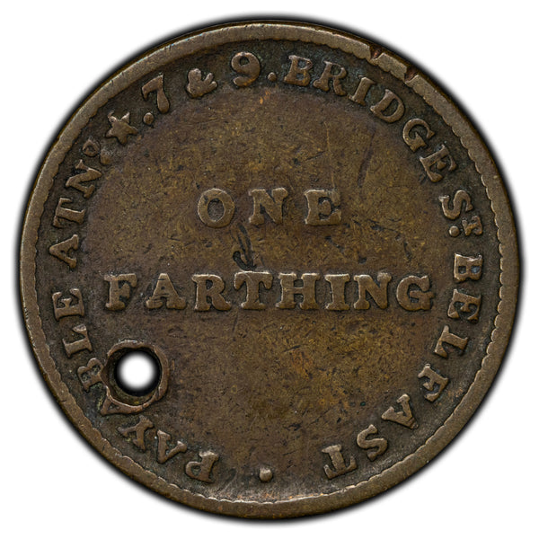 SOLD Ireland ND Belfast John Arnott & Co Farthing Merchant Token - Holed