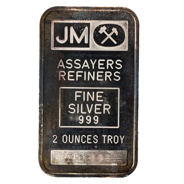 SOLD Johnson Matthey JM 2oz .999 Fine Silver Bar - Plain Back